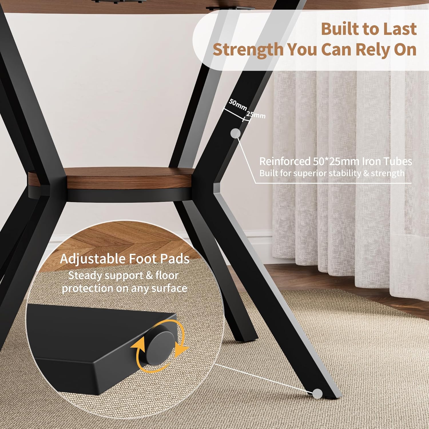 42" Round Dining Table for 4, Farmhouse Kitchen Table with Storage, Space Saving Circle Dinner Table, Rustic Wood Kitchen & Dining Room Tables with Metal Legs for Kitchen, Living Room, Dining Room