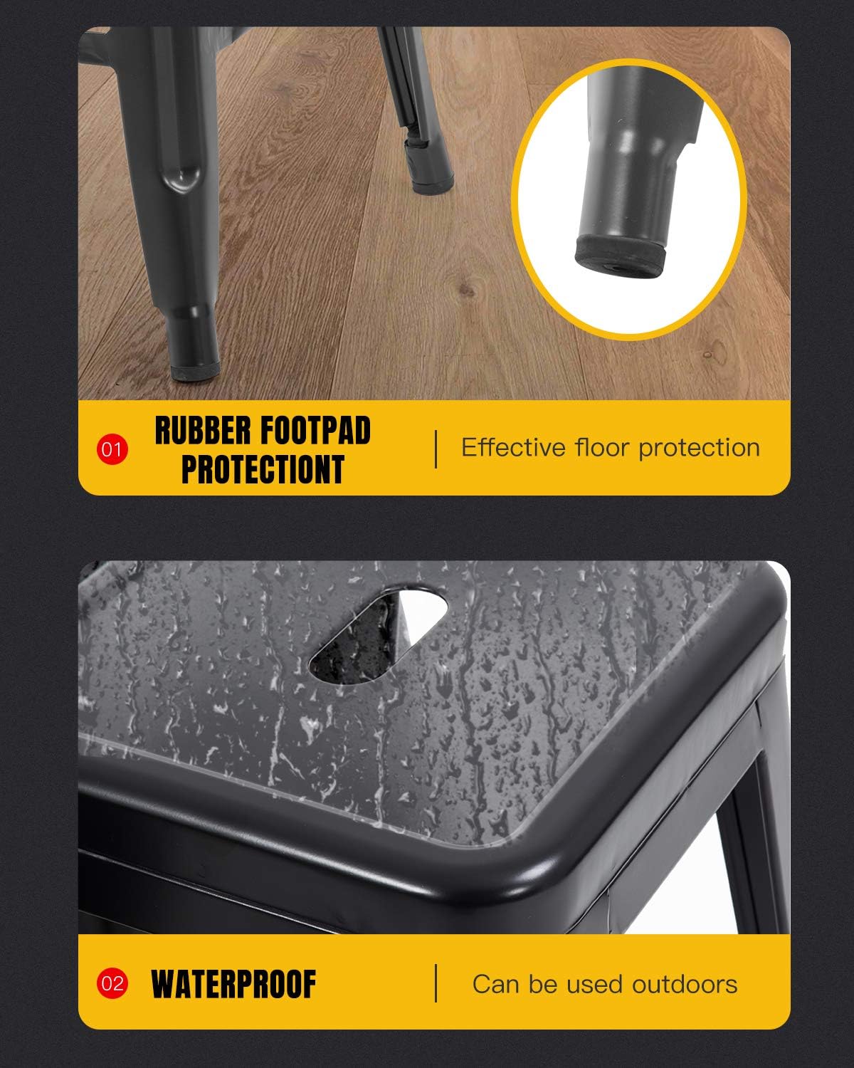 This 30 Inches bar stools will add a modern industrial appearance to your home or work space. This space-saving barstool is stackable making it great for storing. A cross brace underneath the seat adds extra stability and features protective caps that prevent the finish from scratching when stacked. The metal stool frame is designed for all-weather use making it a great option for indoor and outdoor settings. The legs have protective plastic feet that prevent damage to flooring. Suitable decorate your living room, dining room, bar, office and so on. Metal bar stools backless. Stylish modern metal bar stools ideal for kitchen, dorm, shop & bar. Hand-holds make the metal stools easily to be picked up or moved. X-brace support under the seat provides additional stability & durability. Non-mar rubber feet prevent from sliding and scratching floors. Durable scratch-resistant finish. Heavy duty metal construction. Each Lightweight but sturdy stool weighs 10 lbs, while with 330 lbs weight capacity.