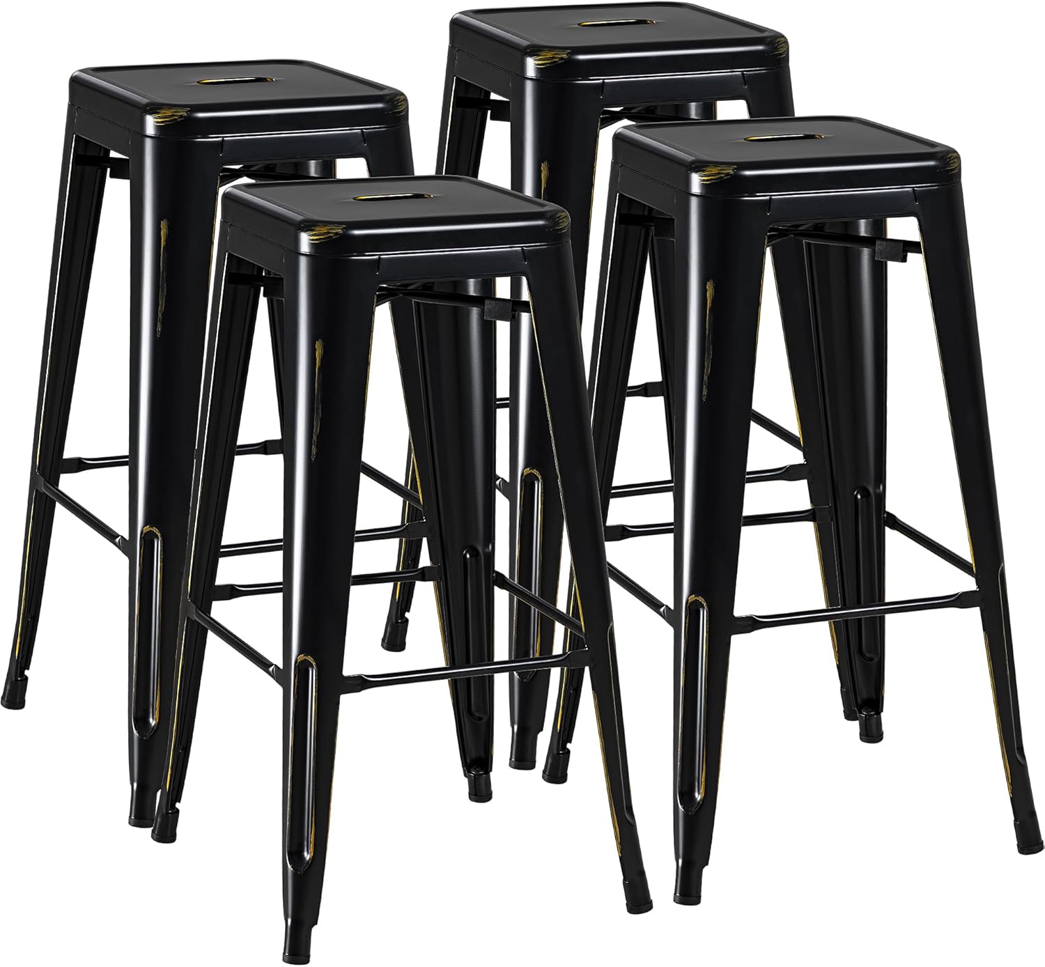 Furmax 30 Inches Metal Bar Stools Bar Height High Backless Stools Indoor Outdoor Stackable Kitchen Stools Set of 4 (Dark Black)