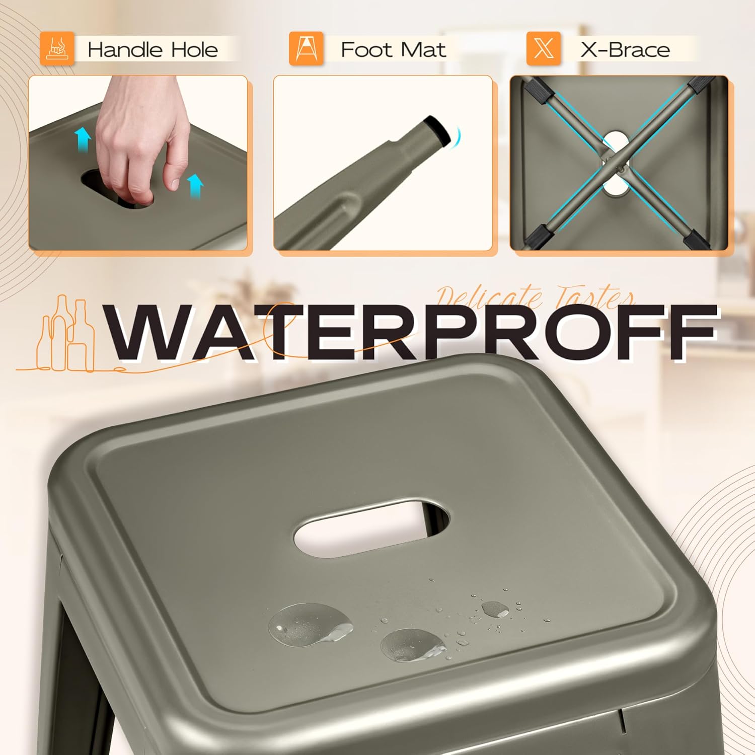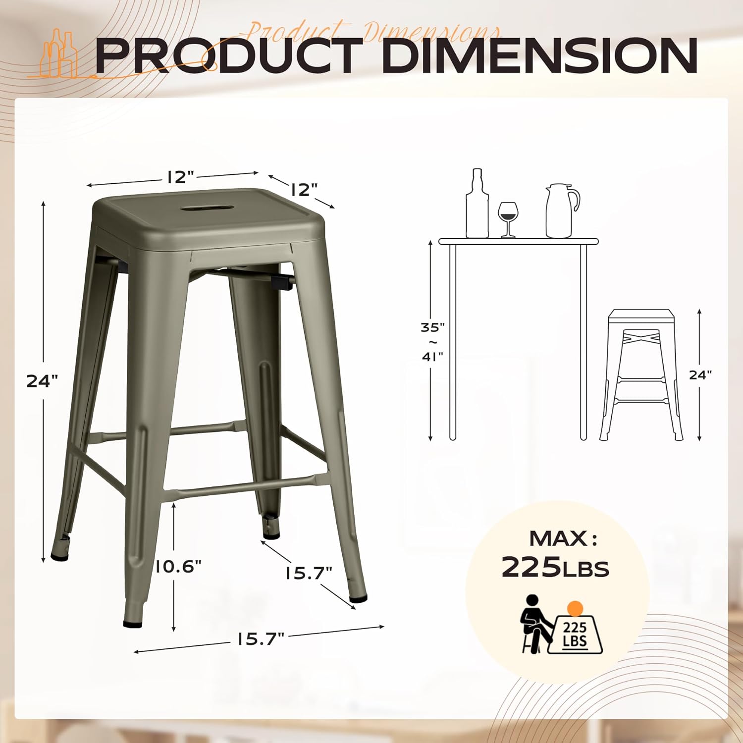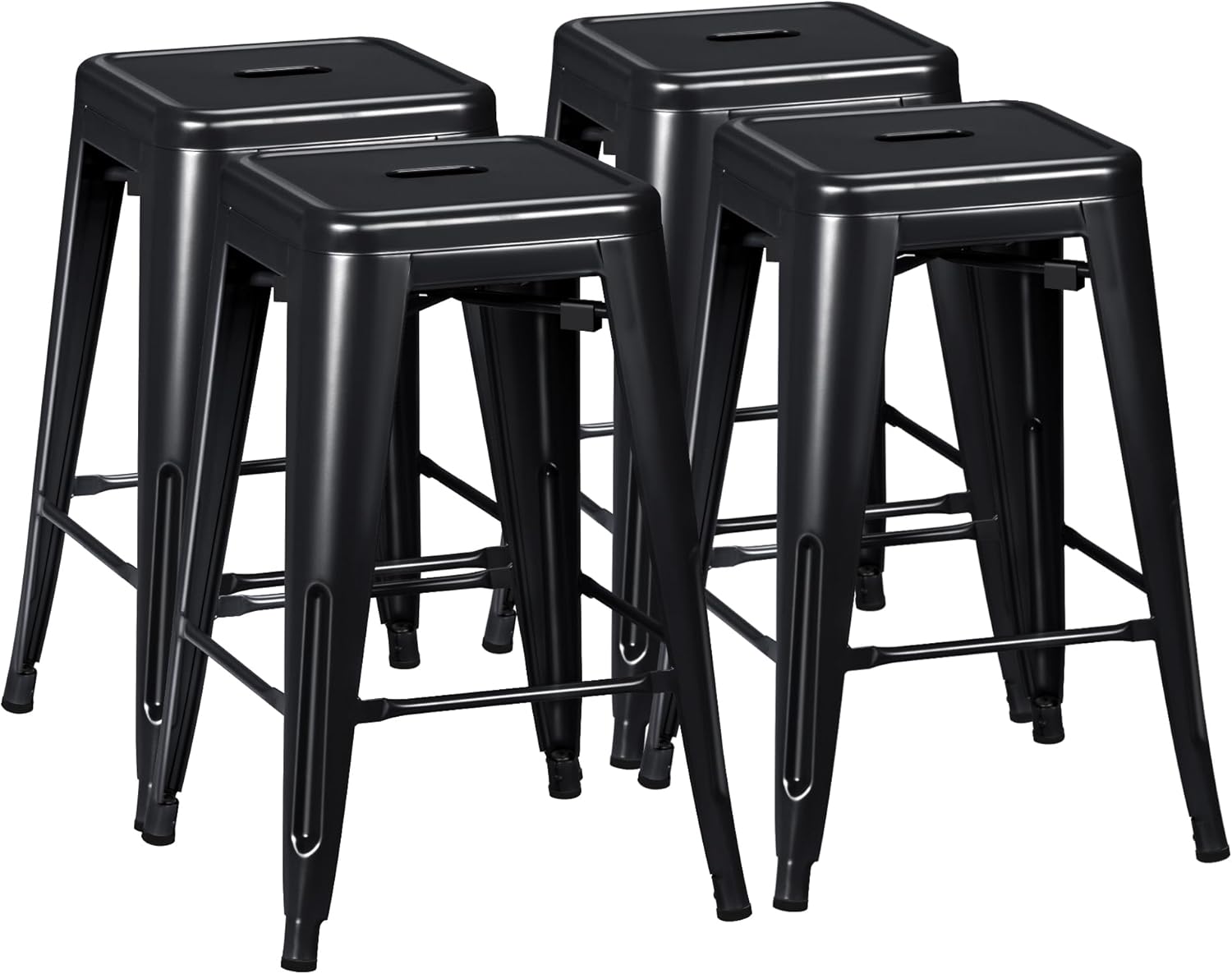 Furmax High Backless Silver Indoor-Outdoor Counter Height Stackable Bar Stools, Set of 4, Gun Metal