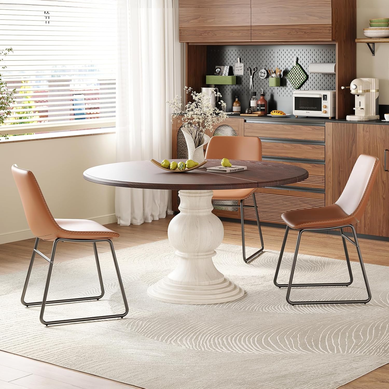 Soohow 47.2" Wood Round Dining Table, Kitchen Table for 4-6 People with Pedestal Base, Ideal for Kitchen and Dining Room
