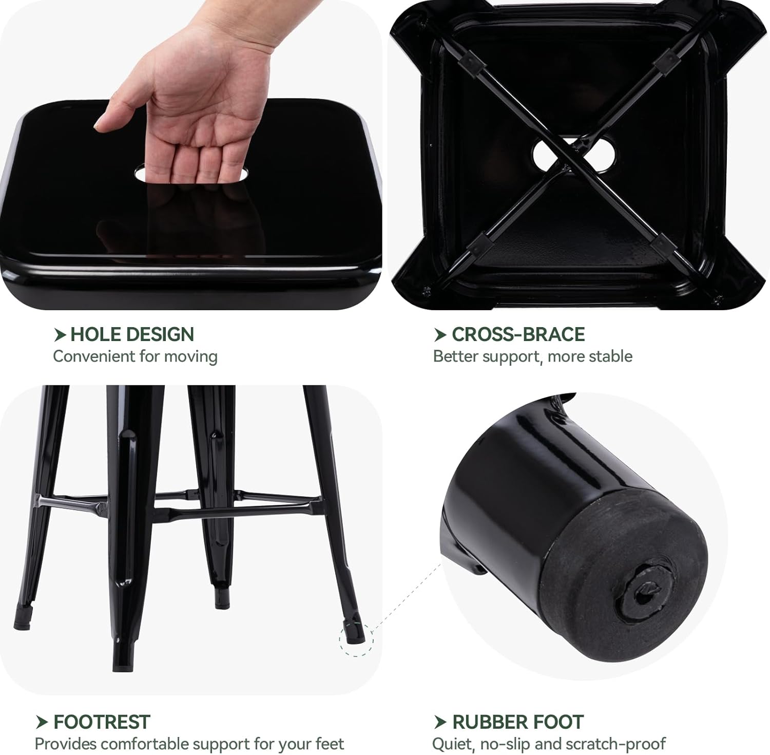 Vogue Furniture Direct 24 Inch Indoor Outdoor Metal Bar Stools with Square Seat