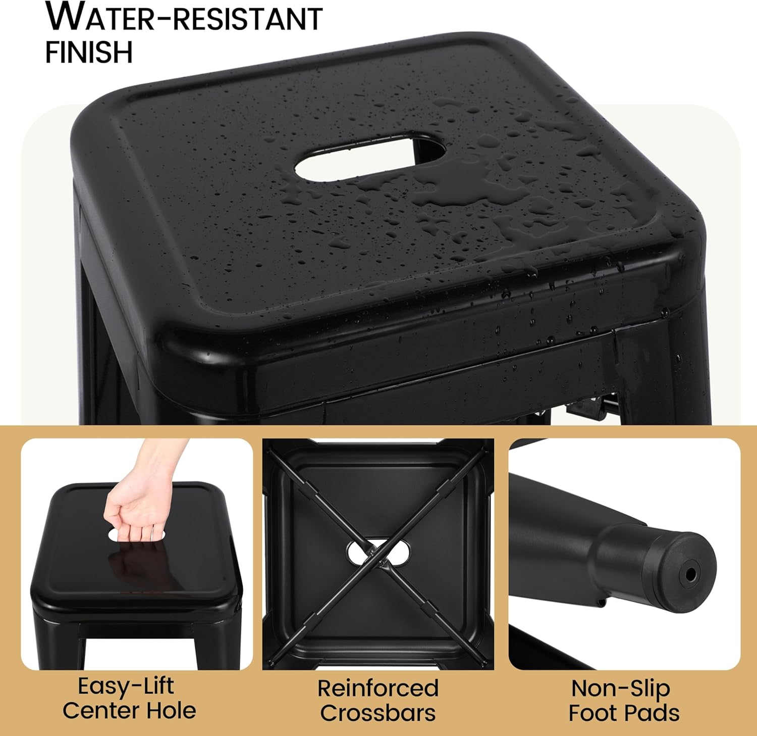 Yaheetech 30 Inches Metal Bar Stools, Set of 4 Bar Height Backless Bartools, Indoor/Outdoor Stackable Kitchen Dining Chair, High Patio Furniture, Black