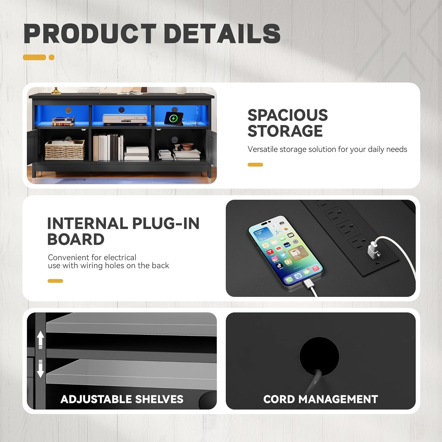 Experience the blend of tradition and modernity with YITAHOME's Farmhouse TV Stand. Recommended to be paired with a 55-inch TV, offers ample storage. Sturdy, adaptable, and includes a 24-color LED light strip for an immersive viewing experience. Quick and easy assembly.